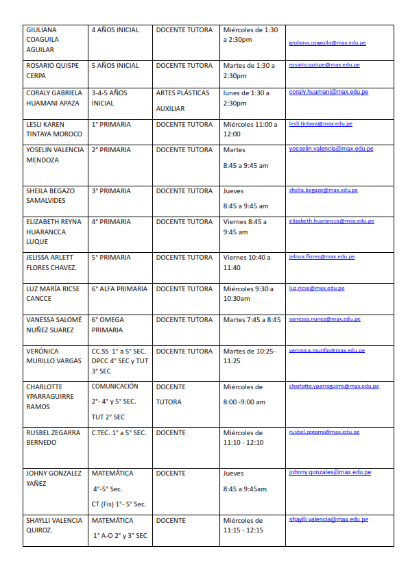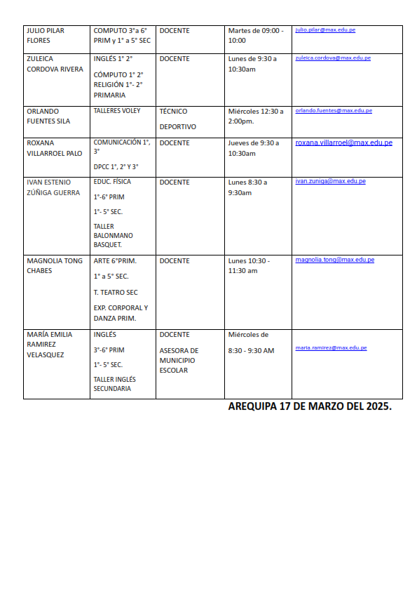 Docentes de todas nuestras Areas